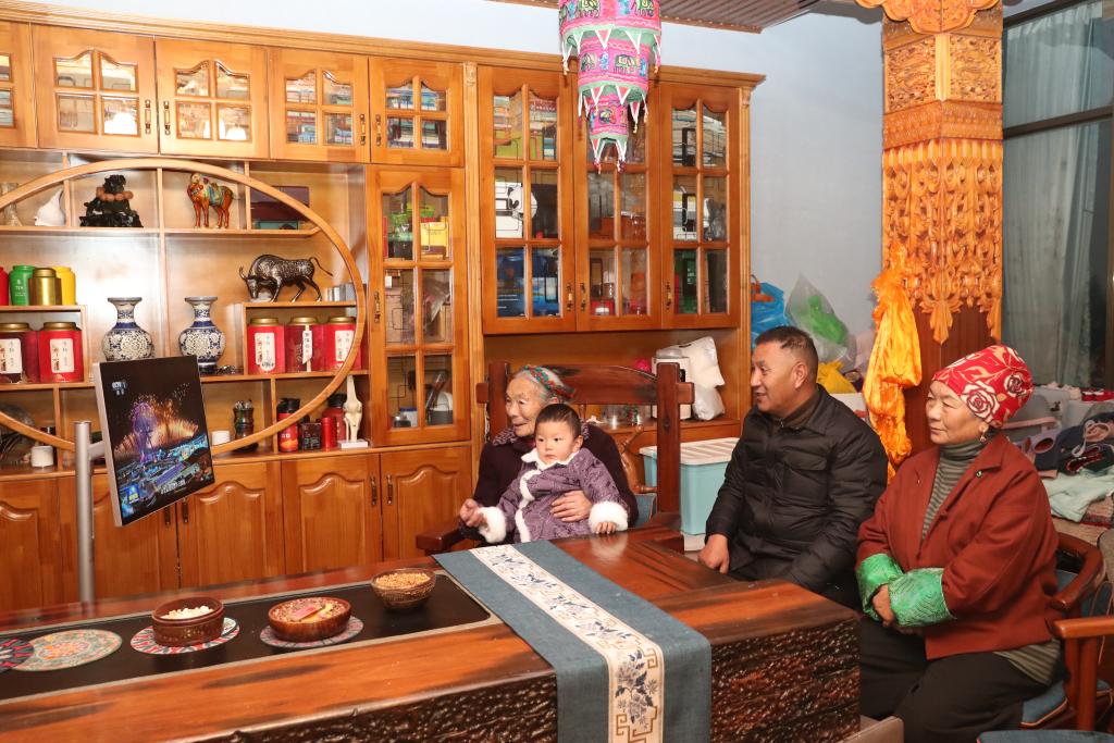 2025年12月31日▼,陈明英(左一)和家人在家中收看习发表二〇二六年新年贺词◇。新华社发(次仁龙布摄)