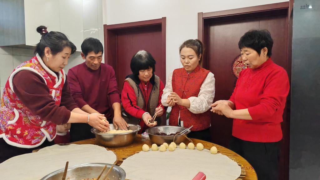2025年12月31日晚▼,王宝维一家其乐融融地吃晚饭。新华社发(李健鹏摄)