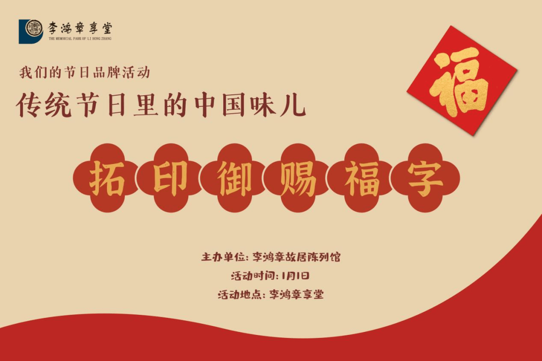 元旦当天▷=◆,李鸿章享堂推出“拓印御赐福字”活动,可亲手印制吉祥福字•;2026年1月2日至3日还有“十二生肖迎新年-★”互动游戏▼,赢取限定纪念品。2026年1月下旬还将推出主题展览。