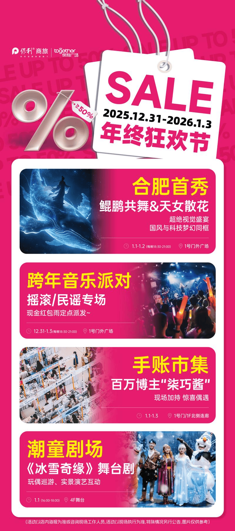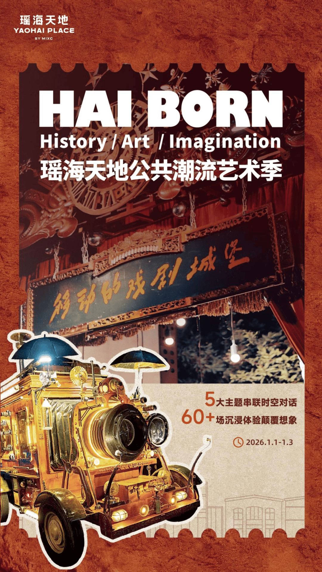 2026年1月1日至3日●•:大家摇摆节•▪▲,让惊喜肆意点燃欢快;现象级蒸汽朋克机车最大阵列艺术戏剧巡游登陆瑶海天地,开启机械与艺术交织的盛宴;艺奇客移动城堡▼△…,经典回响、风格POP、松弛民谣三重音乐现场轮番上演●◆,解锁双重感官的新奇体验。