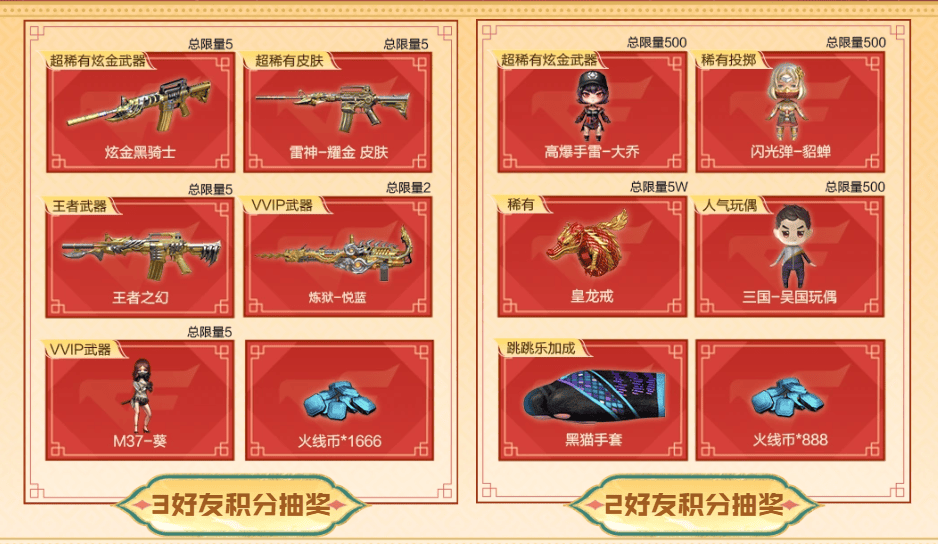 参与方法:CFer消耗好友积分还可进行抽奖,有机会抽取获得王者武器等好礼■▪。