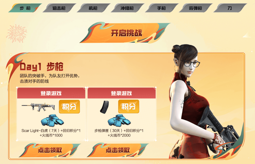 参与方法☆□◁:回流CFer每日可任选一类武器参与“复健训练”,完成对应任务就能即时解锁奖励。