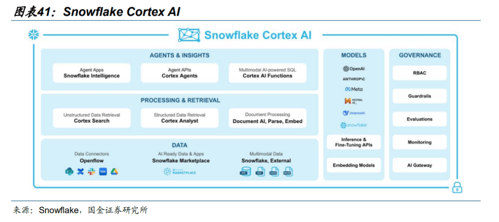Snowflake:全能型数据云平台,Cortex 有望成为企业AI 开发支柱。