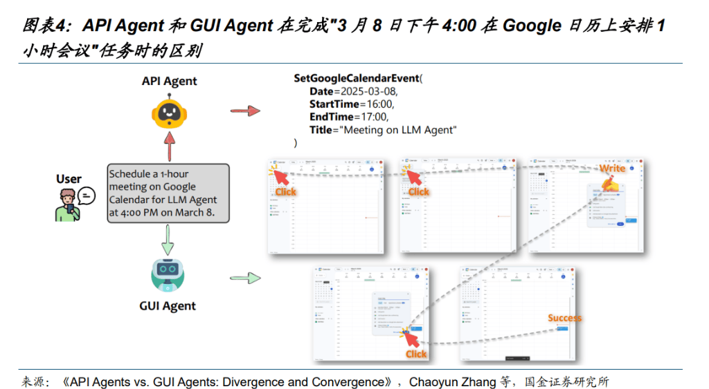 在效率◁•、隐私、可靠性等方面 API Agent 更有优势▷…,但是 GUI Agent 的最核心优势在于灵活通用,不需要应用厂商主动适应,是打通碎片化应用生态的利器=△。预计模型厂商、应用厂商和手机厂商为了抢夺流量入口,会在两种路线选择上进行激烈的博弈。