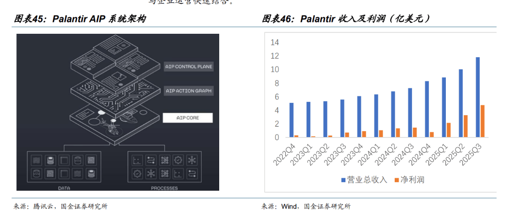 产品包括 4 类◆◇:1)面向政府和情报机构的 Palantir Gotham;2)面向企业的 Palantir Foundry○▼;3)专门支持 Gotham 和 Foundry 的 Apollo 平台◇▲□;4)基于 Palantir 机器学习技术和大规模的 AIP 平台。其中,AIP 平台是专注于提供高级数据整合-○、分析和智能决策支持解决方案=□,提供了大型语言模型和先进人工智能技术的强大能力;无论是在机器系统还是技术边缘设备上-△=,AIP 都能在私有网络中实现对 AI 解决方案的负责。有效和安全的部署,可以高效构建 AI 应用,持续改进 AI 驱动工作流的功能点-…,提供 Ontology SDK 与企业运营快速结合▲★。