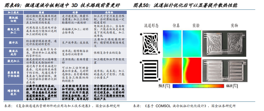 AI 大爆发,3D 打印赋能微通道解决散热痛点。随着AI 芯片功率密度爆发式增长…▷,具备极高换热效率的微通道液冷方案需求迫切,然而传统铲齿◇▪■、CNC 及焊接工艺在制造微通道(深宽比大-▽◁、几何结构复杂且直径低于1mm 的)时◇,受限于加工原理无法实现精细复杂流道成型,又因焊接工序额外引入热阻存在泄漏风险•,难以匹配AI 芯片创新节奏,亟需3D 打印助力突破制造上限。3D 打印彻底解放了流道设计束缚☆□,其无需模具与焊接的一体化成型能力,可直接制造传统工艺无法企及的拓扑优化◆◇、仿生叶脉状等复杂流道…•,大幅增加换热表面积并优化流体动力学性能△▷◇,同时通过微米级精密制造•,能从根源上消除焊接带来的热阻与泄漏隐患▪,提升结构强度,完美适配新一代AI 芯片对极致散热性能的刚性需求。