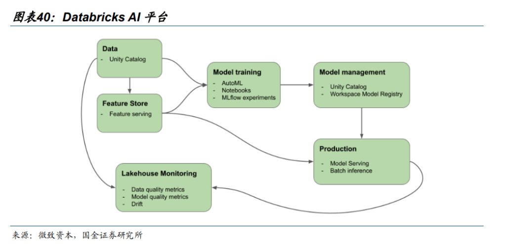 12 月 16 日,Databricks 宣布完成超过 40 亿美元融资,投后估值 1340 亿美元。经营数据方面,公司披露其第三季度对应的年化营收规模超过 48 亿美元,同比增长超过 55%;同时将其 AI 相关产品与数据仓库业务的年化收入规模均超过 10 亿美元,并在过去 12 个月实现自由现金流为止。