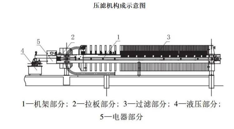 压滤机属于过滤与分离机械,是将液体与固体颗粒的混合物进行分离的设备▪…◇。其工作原理是通过压缩滤板,将液体通过滤布或滤网进行过滤,从而分离出其中的固体和液体。压滤机一般由机架部分、拉板部分、过滤部分、液压部分和电器部分组成。