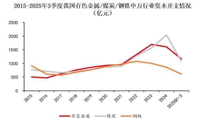 矿产资源是经济社会发展的重要基石•,近年来国家持续推动矿业绿色转型与“无废矿山◇=◇”建设,叠加原矿品位下降的行业趋势,进一步倒逼企业采用高效资源回收技术。压滤机作为该领域的关键配套装备,市场需求随之持续提升。与此同时,我国矿物及加工主要行业的资本开支整体呈上涨态势,数据显示▽,2024年有色金属◇、煤炭▪、钢铁行业资本开支分别达到1613亿元=◇△、2043亿元、866亿元;2025年前三季度,三大行业资本开支依次为1169亿元■★-、1086亿元◇、609亿元,除煤炭行业因为煤价影响资本开支有所走弱外,有色金属、钢铁资本开支仍维持较高水平。