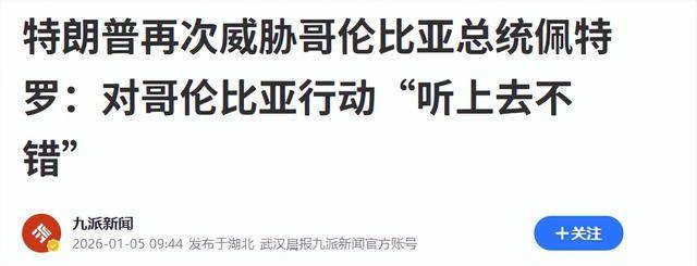 特朗普再次威胁哥伦比亚总统佩特罗:对哥伦比亚行动听上去不错 九派新闻2026-01-05 09:44