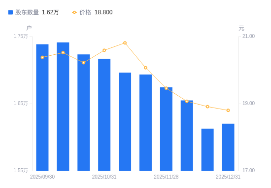 近一年(2024年12月31日至2025年12月31日),冠龙节能A股股东户数从1.55万户☆,增加至1▲△.62万户,增幅4.21%◇,区间股价上涨21☆=-.76%。