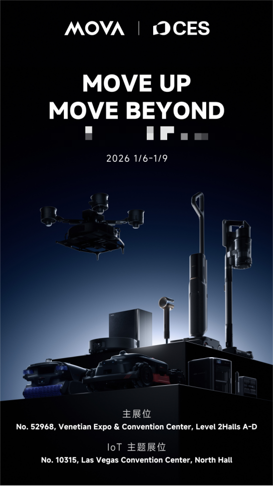 科技行业年度盛事——国际消费电子展(CES)即将于2026年1月6日至9日在拉斯维加斯再度启幕。这一次•,AI智慧生活引领者MOVA将携19条产品线大●“行业新物种”,在Venetian Expo & Conv Center Level 2, Halls A-D及LVCC North Hall双展位强势亮相,向世界宣告:智能家居的战场•,已从地面延伸至••△“水、陆□■、空”全场景。