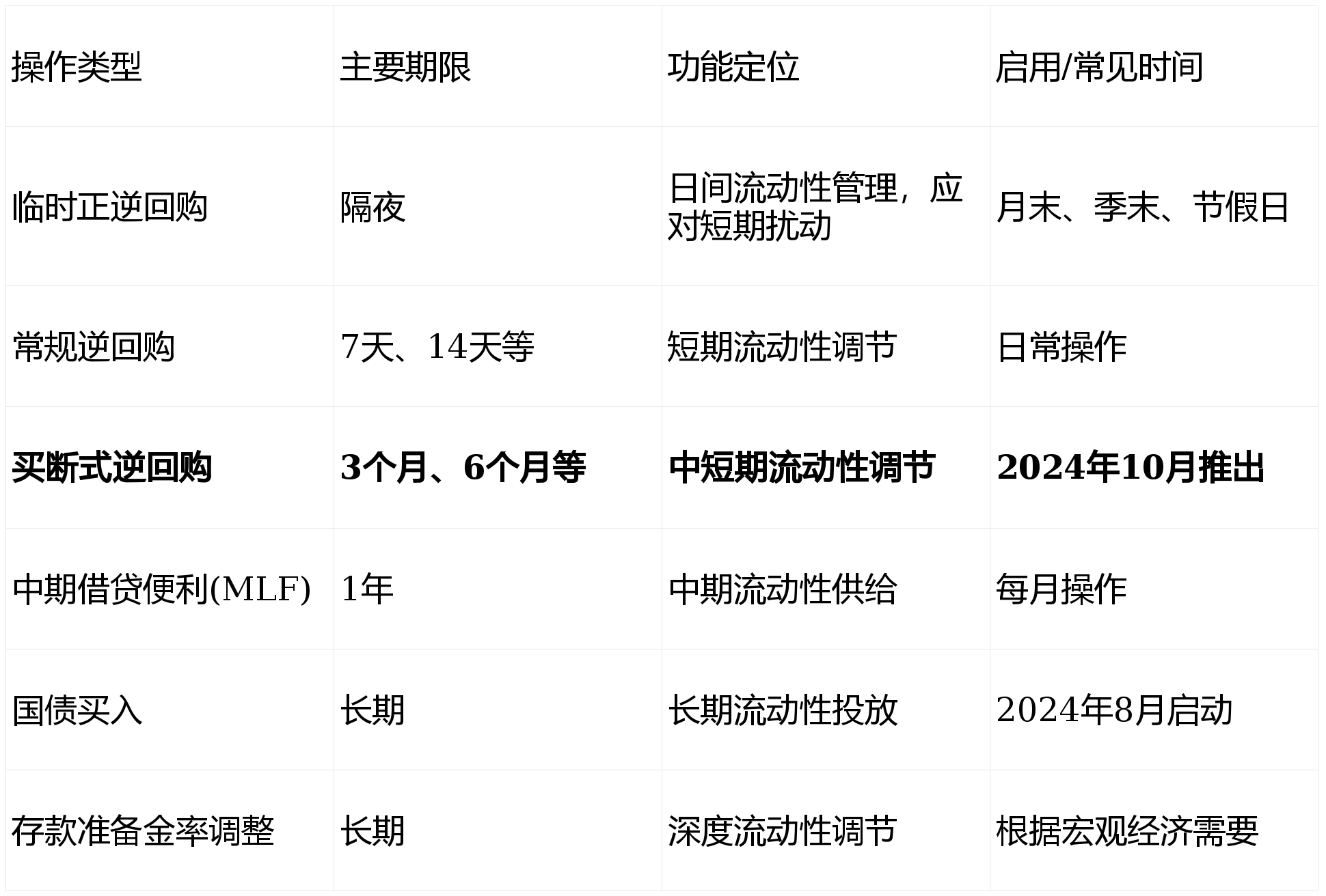 2024年10月,央行正式在公开市场操作中启用买断式逆回购工具□•。这一创新填补了央行在1个月至1年期限流动性调节工具的空白。