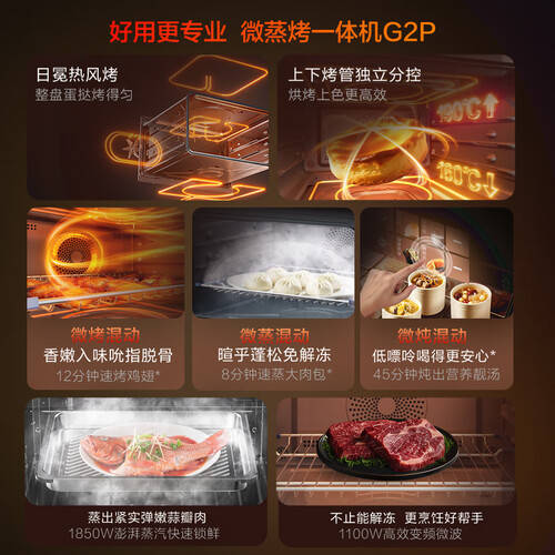 这款微蒸烤一体机结合了蒸、烤、炖、炸等五大功能•△,满足了家庭各种菜式的需求。用一台机器搞定多种烹饪操作,省心又省空间。想炸薯条、烤鸡腿或者蒸包子◆△,都能轻松应对。
