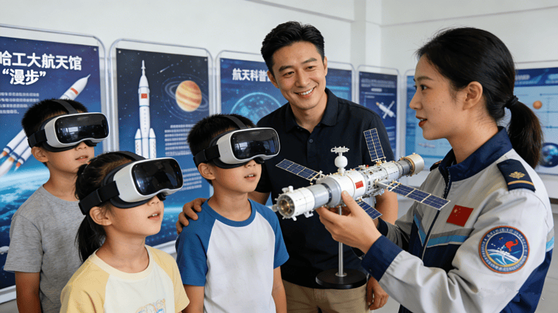 行程第二天的节奏精准踩在亲子需求上。清晨七点半,我们跟着导游走团队通道进入圣索菲亚教堂,避开了高峰人流-◁★。导游拿着绘本给孩子们讲解拜占庭式建筑的奥秘△,一旁还贴心设置了暖椅供休息。上午的哈工大航天馆堪称惊喜,2025 年更新的神舟飞船模型前,研学老师用童趣语言科普航天知识,孩子们戴着 VR 眼镜 “漫步” 空间站的模样,成为当天最珍贵的画面••■。