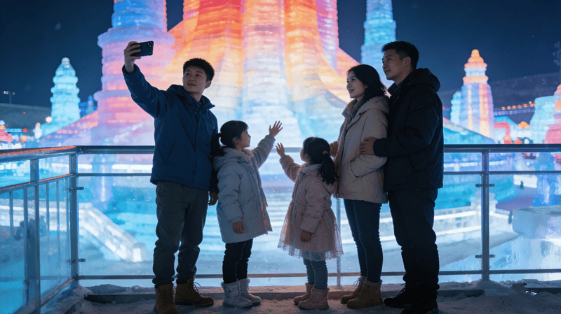 傍晚时分•○▷,521 米的超级冰滑梯终于不用排长队,导游提醒我们 “身体稍向后仰•●”,果然滑行时既刺激又平稳。当夜间灯光秀在 16▽★=:30 准时开启●•,冰雕在斑斓光影中流转,大儿子兴奋地说▪:“这是童话里的城堡!” 此时导游早已在暖房备好热姜茶■,让我们取暖的同时,还分享了保暖秘诀:膝盖贴暖宝宝★▼、穿羊毛袜配发热鞋垫,这些细节让零下二十度的游玩毫无负担。