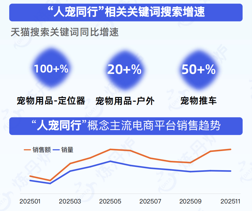 社交平台的快速传播,让宠物穿搭分享成为新型养宠社交场景。相关关键词搜索增速显著,社媒话题讨论声量高涨,显示出强大的市场驱动力。