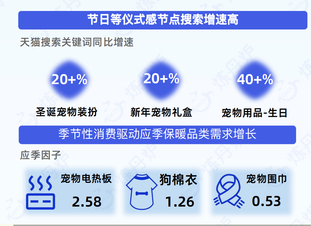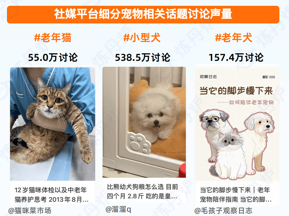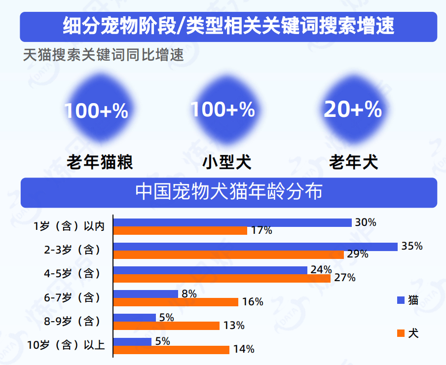 针对老年犬猫的关节护理粮、口腔护理粮,以及分品种定制的食品和用品需求快速增长。相关关键词搜索增速明显,显示细分赛道潜力巨大。